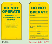All tags meet OSHA 29CFR1910.145 specifications for accident prevention tags.